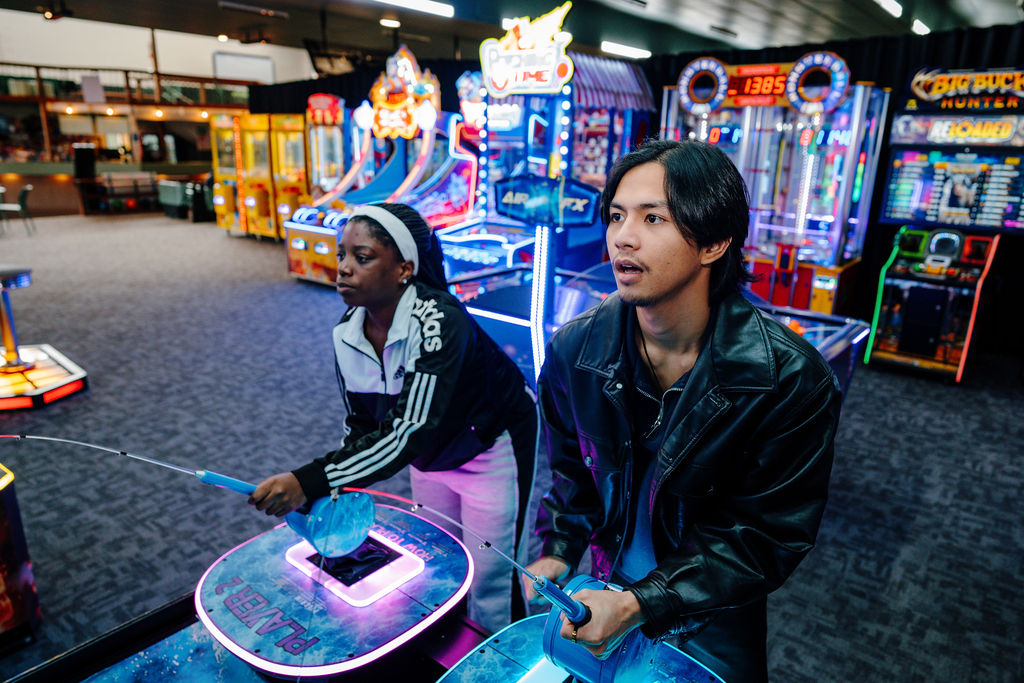 We have 37 arcade games to keep you and your friends amused. Hammer, Punch a Prize, Fast Gunman, Air Hockey, Big Buck Hunter, Tuna Fishing, Super Pong, Basketball, Virtual Darts, Zombie Outbreak, T-rex Fight, Jump n Stack, Golden Gear, Genies Jewel, Pitching Time, Cube World, Table Soccor, SuperChex, Balloon Buster, Barbercut, Keymaster, Stacker, Ticket Carnival, Claw Machines and much more!