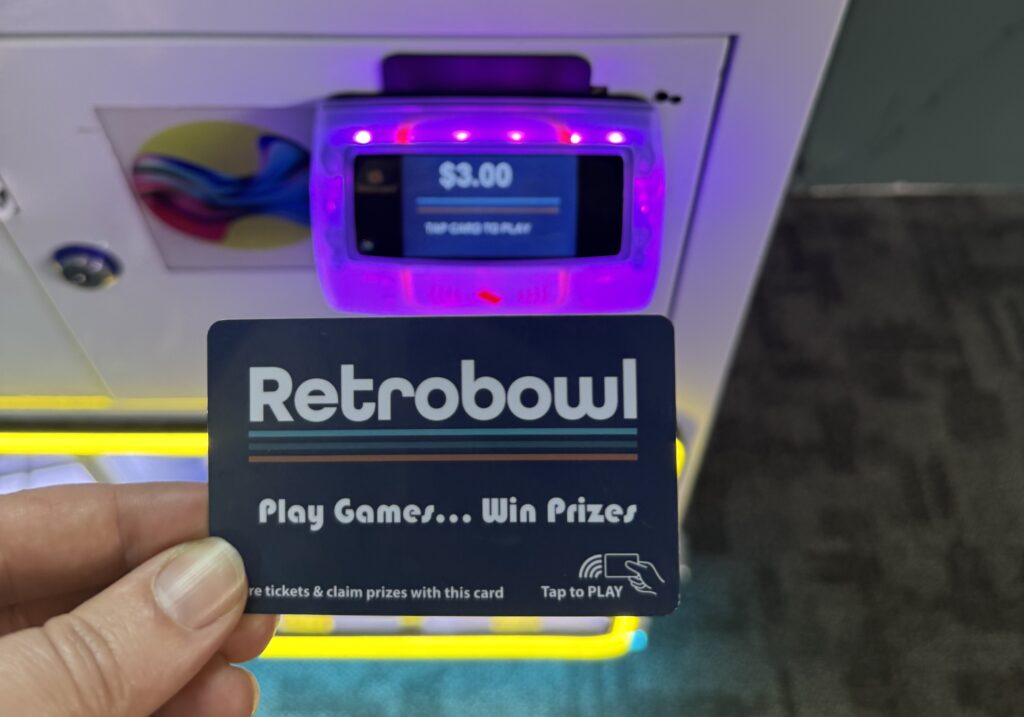 All games are played using the all new Retrobowl arcade card. Simply load credit at the touch screen kiosk and then tap to play your favourite games. Collect points, then redeem your points for prizes at the Retro Rewards counter